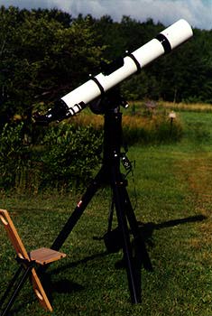 Seasons Beneath the Stars by Joe Bergeron As the last leaves of Autumn are blown from the trees by wintry winds, I find myself looking back at the observing season just ended. Though an upstate New Yorker, I'm no cold-weather astronomer. To huddle against the wind, eyes watering, in dread of having to dismantle a large mass of frigid metal with my bare hands, is not my idea of fun. My usual dark-sky observing site becomes inaccessible, the steep dirt road leading to it covered with snow, ice, or mud. With the exception of a sortie to the Winter Star Party, I do little observing for five months of the year. I return to my site only when Winter recedes, and I surrender again to its authority soon after the leaves are gone. In the seven months in between, the seasons flow by with a comforting predictability, each lending its own personality and riches to the starscape that floats overhead. Discovering how the nocturnal cycles of life on Earth run in synchrony with the seasonal passing of the stars was a great wonder to me as a child. Now these cycles are a source of comfort, even though they spin by faster as I reach middle life. Last year I made a courageous first reconnaissance to my hilltop site in late March. These are the last brooding days of Winter. The nights are silent, free of the choruses of animal sounds which give way to one another through the year's greener seasons. The two ponds still glimmer white and frozen in the starlight. The ground may be free of snow, perhaps for the first time in months, but the grass is pale, and the earth is frozen hard. The site is an orchard. The branches of the apple trees are stark, dry, and bare, all promise of renewed life still concealed. Orion stands tall, but he is contemplating his imminent dive into the sun's glare. Leo towers overhead, while Arcturus, a beacon and harbinger of the warmer, softer nights of Spring, is barely over the horizon. The land feels only half awake, and wary, not yet ready to stir. It would be all too easy for Winter to strike again, even yet. All this abruptly changes some weeks later, perhaps in April, certainly by May. Suddenly a night on the hill is far from silent, but is filled with the massed tinkling of hundreds of tiny bells and whistles. The Spring Peepers have awakened. Life has made a miraculous resurgence in this place where silence reigned for so many months. The ponds are ice-free, if still cold. They spew tiny frogs into the grass and trees around them. Their urgent reinvigoration, and their need to proclaim it, outweighs any need for stealth against predators...or even against amateur astronomers who loom nearby. I peer into the eyepiece at flocks of remote galaxies even more numerous than the peepers. Their song is a comfort to me as I look across these chilling spaces, into the utter mystery of far-off galaxies, each of which contains more places and enigmas than I could possibly imagine in my lifetime. The frog chorus is cheerful, insistent. Although the individual voices are fragile, the song itself is compelling, almost overwhelming, a chant in celebration of life. Peeper Season. A time of hope and promise. Sometime in June the peeper chorus falls off, taken up by the sporadic solos of larger frogs. The sound of the peepers is replaced by the light of mating insects. Fireflies, swarming up from the green, grassy earth in their thousands. By now Arcturus is high overhead at dusk, while Leo dives head-first into the evening twilight and Hercules and Lyra bring their summery riches into view in the east. The nights are gentle, sweet with the scent of apple blossoms. The long summer is still ahead, and the earth is gracious and generous. For every twinkle of starlight overhead, a flitting beetle gives off its pulses of greenish light. Firefly Season. The fireflies fall dim in July, resuming their normal inconspicuous existence. Their "lightning" is replaced by that which spears and rumbles out of real thunderstorms. On still, gentle nights, often hazy in the heat and humidity of High Summer, there is a lull, with no animal chorus, either vocal or optical. It's broken now and then by the more solitary animals who share the hilltop with me. The throaty "gunks" of green frogs. The chain-saw snort of a deer startled by the sight of a man sitting at a tall telescope. The hooting of an owl. In the distance, the wailing of coyotes. Antares smolders sullenly in the south. Blueberry bushes provide a light breakfast, should I care to stay overnight for a morning swim, or to study the pebbled-glass texture of the sun through my telescope. Blueberry Season. Cricket Season begins in August. Now with increasing frequency, the skies are blown clear of haze by masses of dry, chilly air sinking down from Canada. The Milky Way stands overhead in all its richness. This is Summer's peak. Life is rampant, at its full strength for the year...and therefore, about to decline. The cricket song, reenforced by the music of katydids and cicadas, lacks the quality of joy that the peepers had earlier. It's an older sound, dryer, more restrained, alien as the starswarms of globular clusters that throng in my eyepiece. By October the insect sounds have all but ended. The trees take on the hot colors of the spectrum, their leaves now both unnecessary and unsupportable, about to be cast off. The sunlight which paints the hills as I drive to my site has a peculiar clarity, a unique stillness. And it carries a warning. Life must tally up its gains and losses for the year in preparation for the harshness just ahead. The Pleiades float in the east. Orion marshalls his strength just below the horizon. Fall nights on the hill are peaceful, yet almost ominous. After the leaves are shed, the hilltop is cold and barren, awaiting the first covering of snow. I retreat, stowing away my telescopes and awaiting the distant spring. Orion and his glittering cohorts will soon rule over the snow-covered hill, and over many a frosty night. But I am